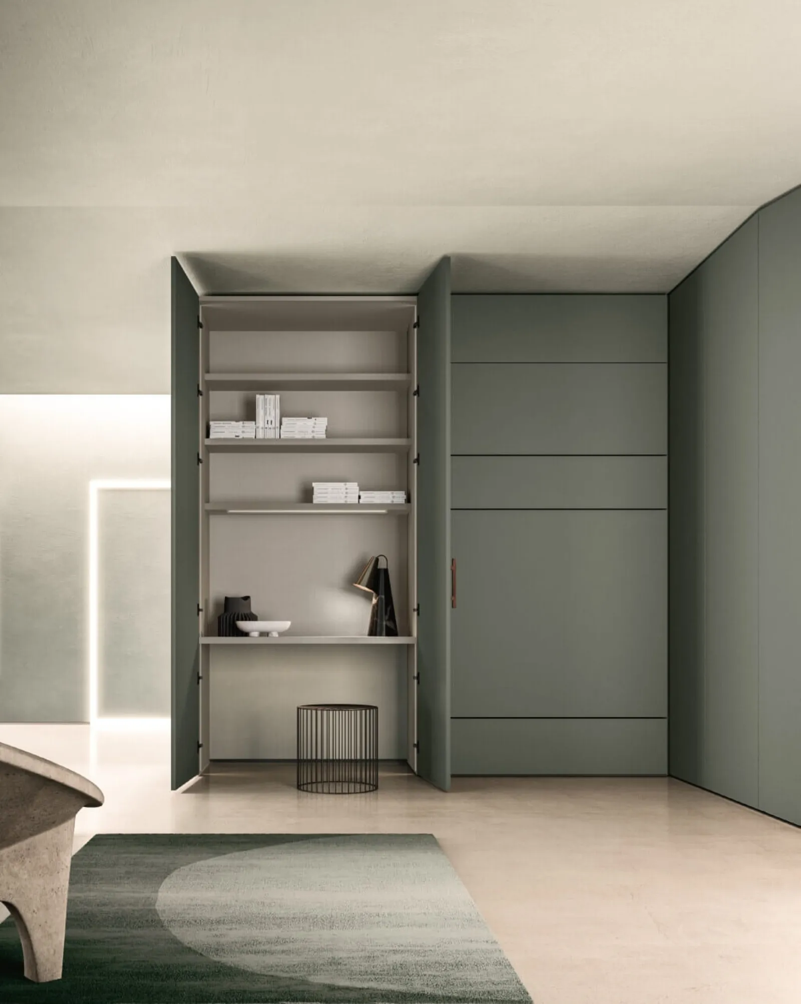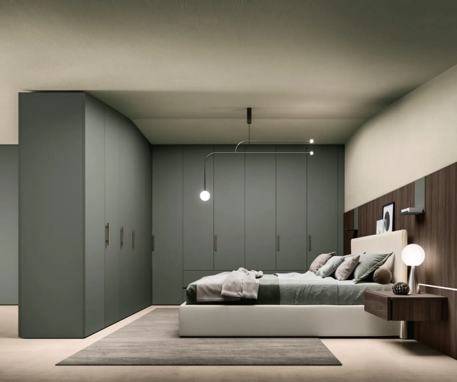 Per ammobiliare perfettamente una stanza bella e funzionale, scegli le più belle soluzioni dei migliori produttori, letti, armadi e comodini di elevata qualità. Gli Armadi ad angolo con ante battenti sono elementi irrinunciabili nella zona notte, per renderla arredata con gusto, pratica e completa di tutto. Contattaci e ottieni informazioni sulla nostra linea di Arredamento Casa: sarai in grado di completare la zona del riposo avendo a disposizione una ampia gamma di mobili contenitori moderni, come l'armadio in melaminico nella fotografia.