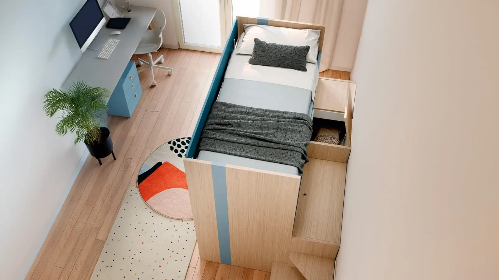 Questa proposta in melaminico ultima al meglio le doti di funzionalità e il valore estetico della camaretta, in quanto è capace di unire ergonomia e sicurezza. Nell'arredo della stanza dei giovani affidati a noi: nel nostro showroom proponiamo tutte le più belle composizioni moderne per la loro camera. Se cerchi idee creative per arredare al meglio la stanza dei tuoi bambini, ti proponiamo la Cameretta con letti a castello Lila di Nidi con finitura in melaminico. Porta design e colori vivaci nella stanza dedicata ai bambini con questa soluzione, una tra le Camerette con letti a castello per bambine di Nidi.