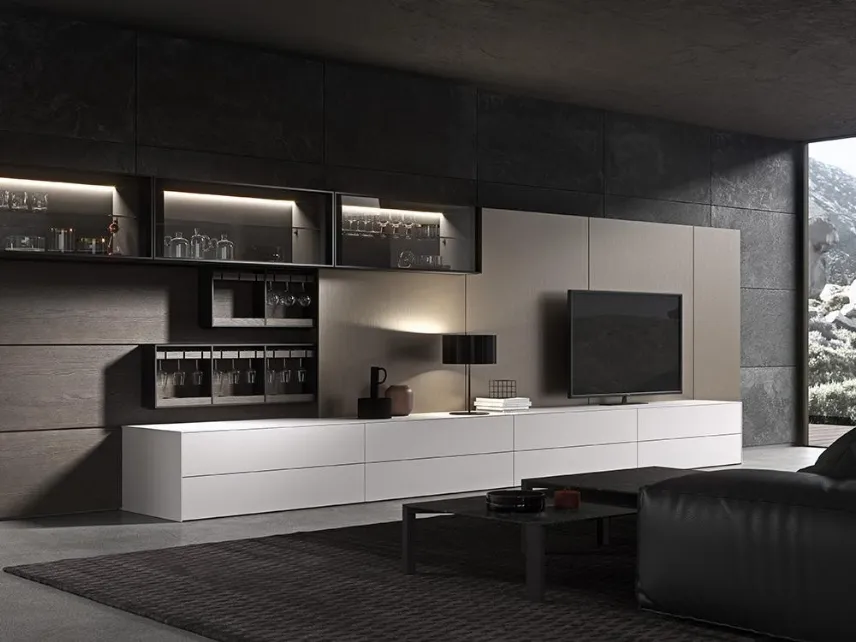 Anche in un living abbastanza piccolo, questo tipo di arredo riesce a ottimizzare gli spazi sfruttando bene ogni angolo e assicurando l'alta componibilità tipica delle soluzioni moderne. Un po’ librerie, un po’ mobili contenitori ed espositori: le Pareti Attrezzate sono ideali per arredare uno spazio pratico e operativo. La Parete Attrezzata MH6 03 di Modulnova nell'immagine, con finitura in laccato opaco, risolve le più particolari esigenze abitative di stile e spazio senza rinunciare alla ricerca stilistica. Se cerchi arredi salvaspazio e realizzabili su misura per te, contattaci e ottieni informazioni sull'Arredamento Casa dei migliori produttori. Questa soluzione rappresenta tutta la qualità che il marchio garantisce grazie a pluriennale competenza e grande dedizione nel campo dell'arredo e del design.